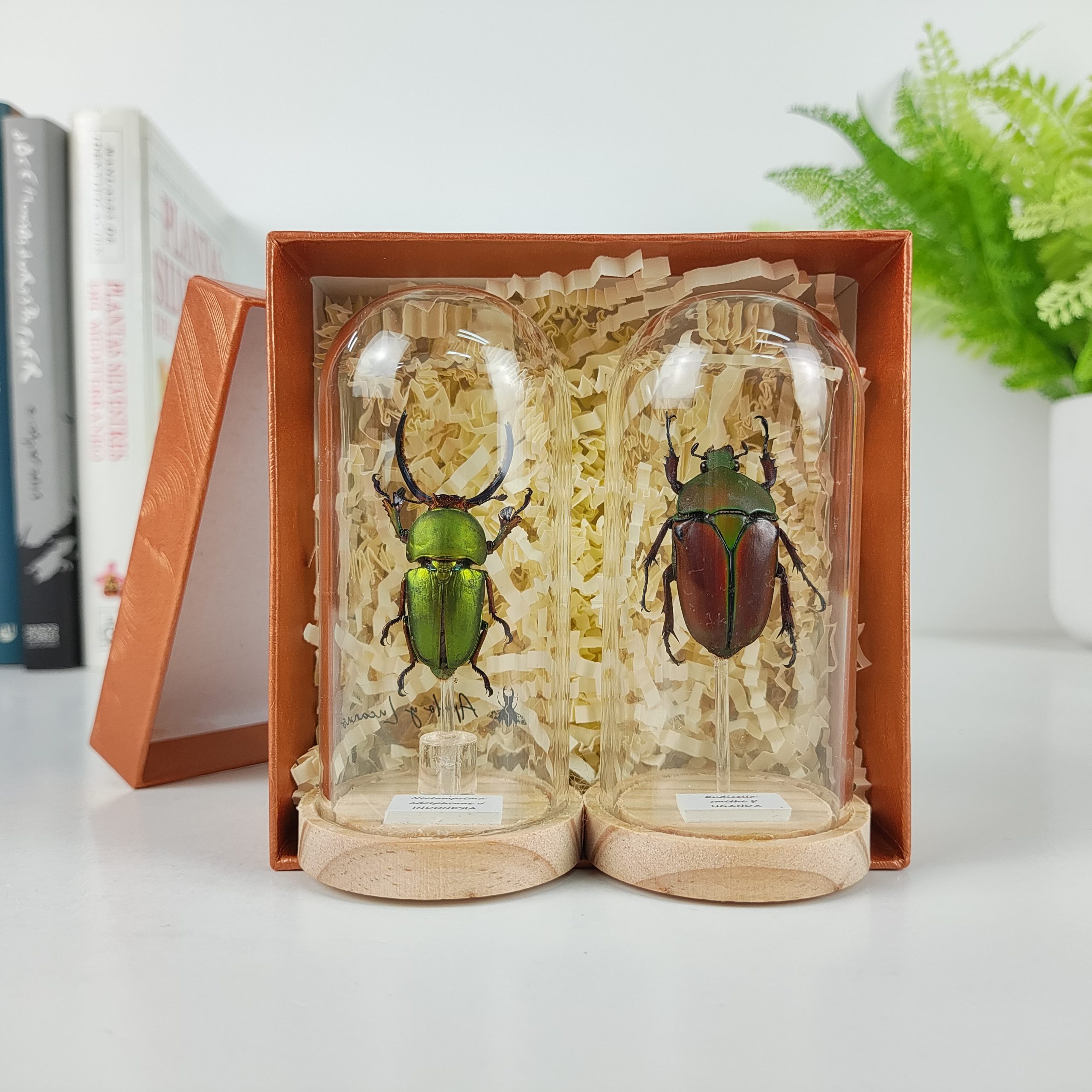 Dos machos de dos llamativas especies. Una de Oceanía y otra de África juntan sus diseños y colores metálicos para decorar y ser un regalo perfecto.