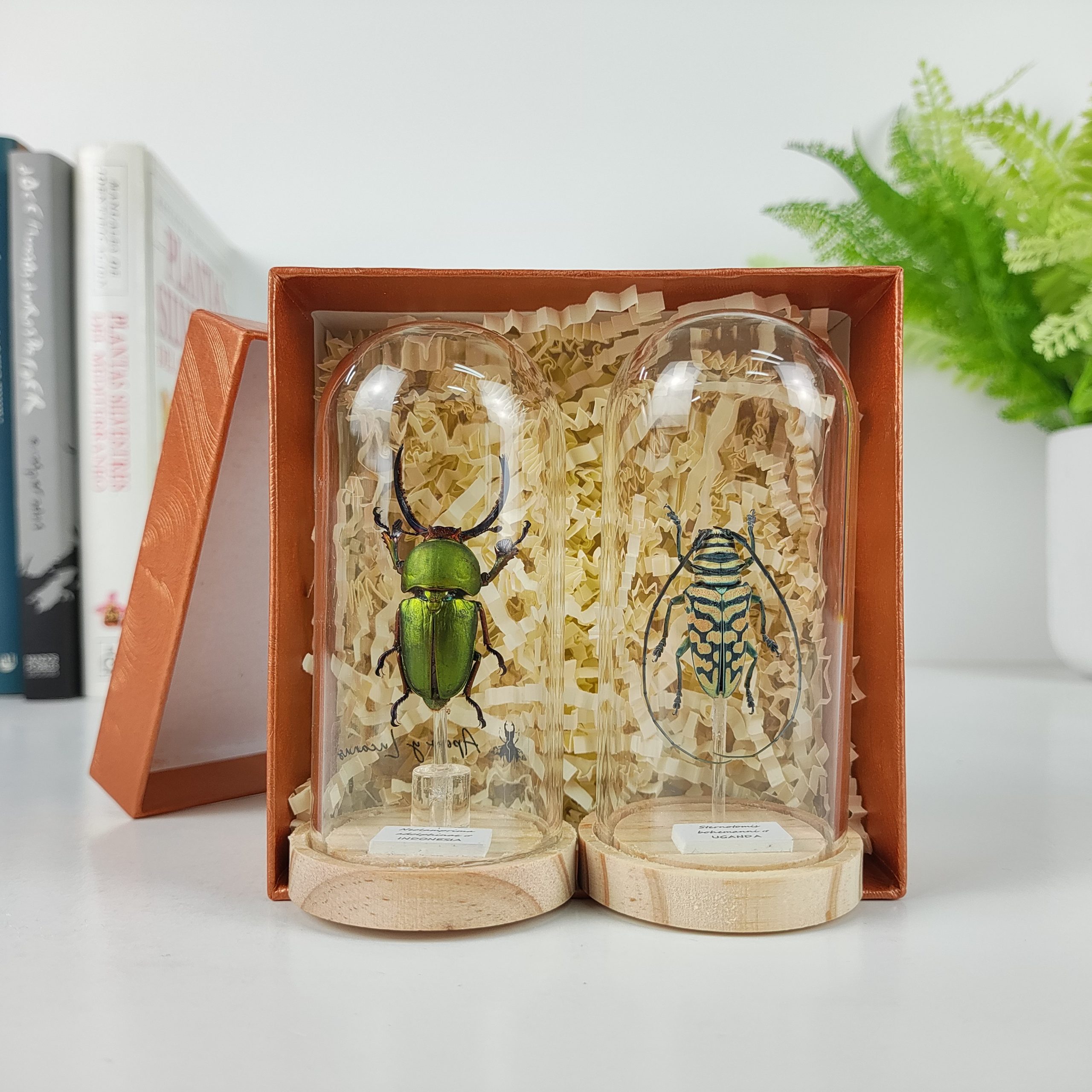 Caja 2 Mini Cúpulas Neolamprima adolphinae (Macho) y Sternotomis bohemani (Macho). Mini Cúpula 4×9 cm.