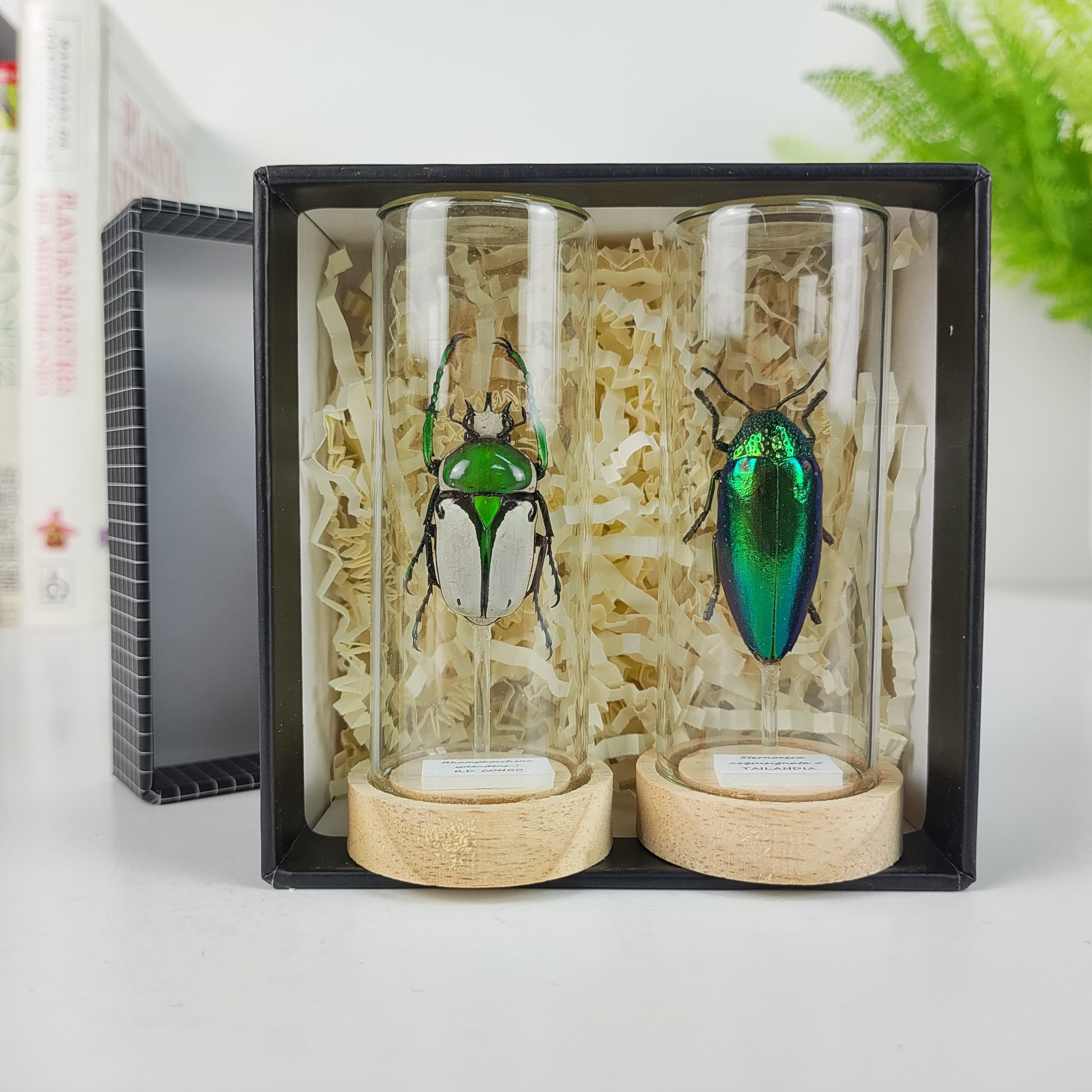 Dos machos de dos llamativas especies. Una de África y otra de Asia juntan sus diseños y colores metálicos para decorar y ser un regalo perfecto.