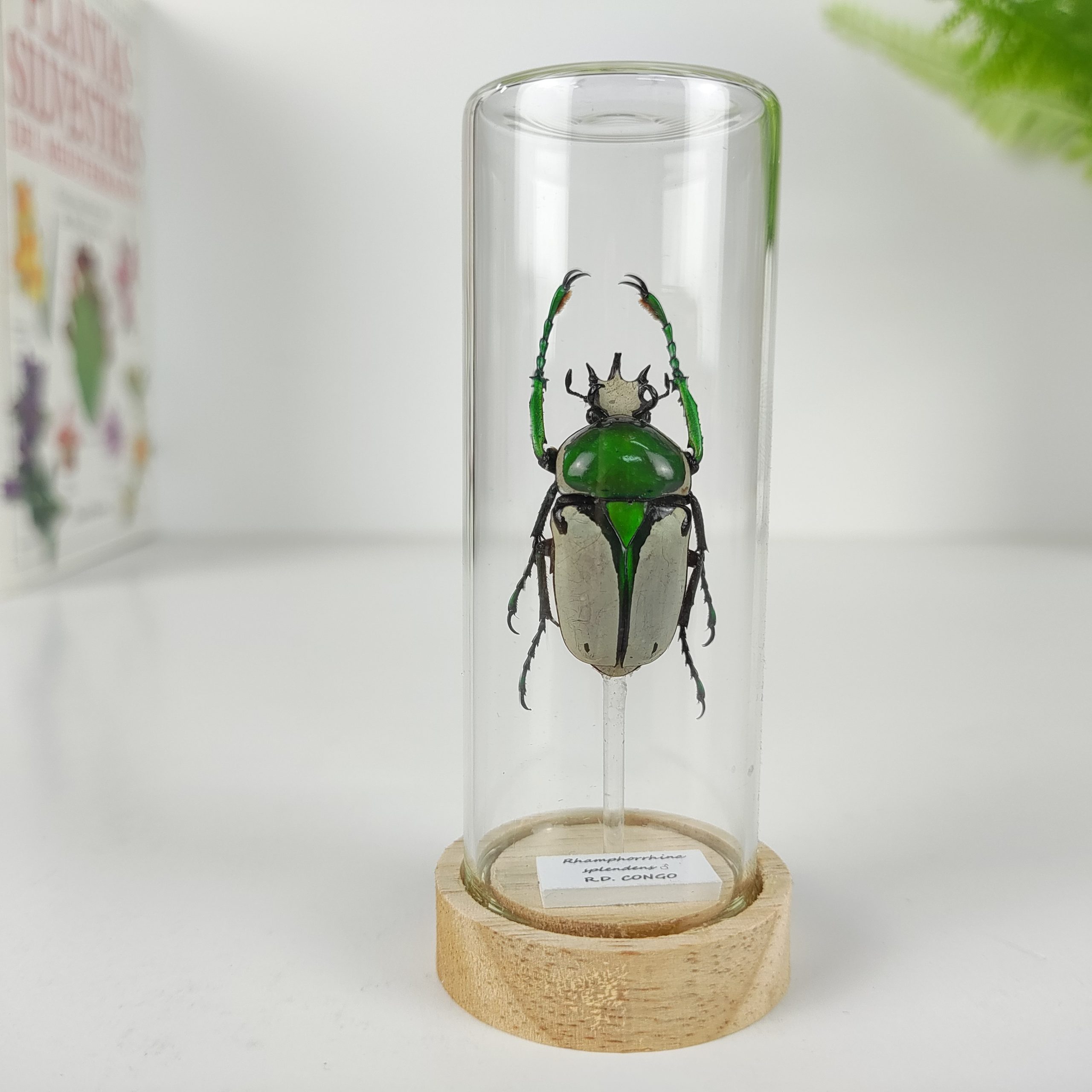 Presentación, Presentación, cúpula de cristal de base de madera natural. Diámetro 4 cm, altura 8,5 cm en CAJITA decorada.