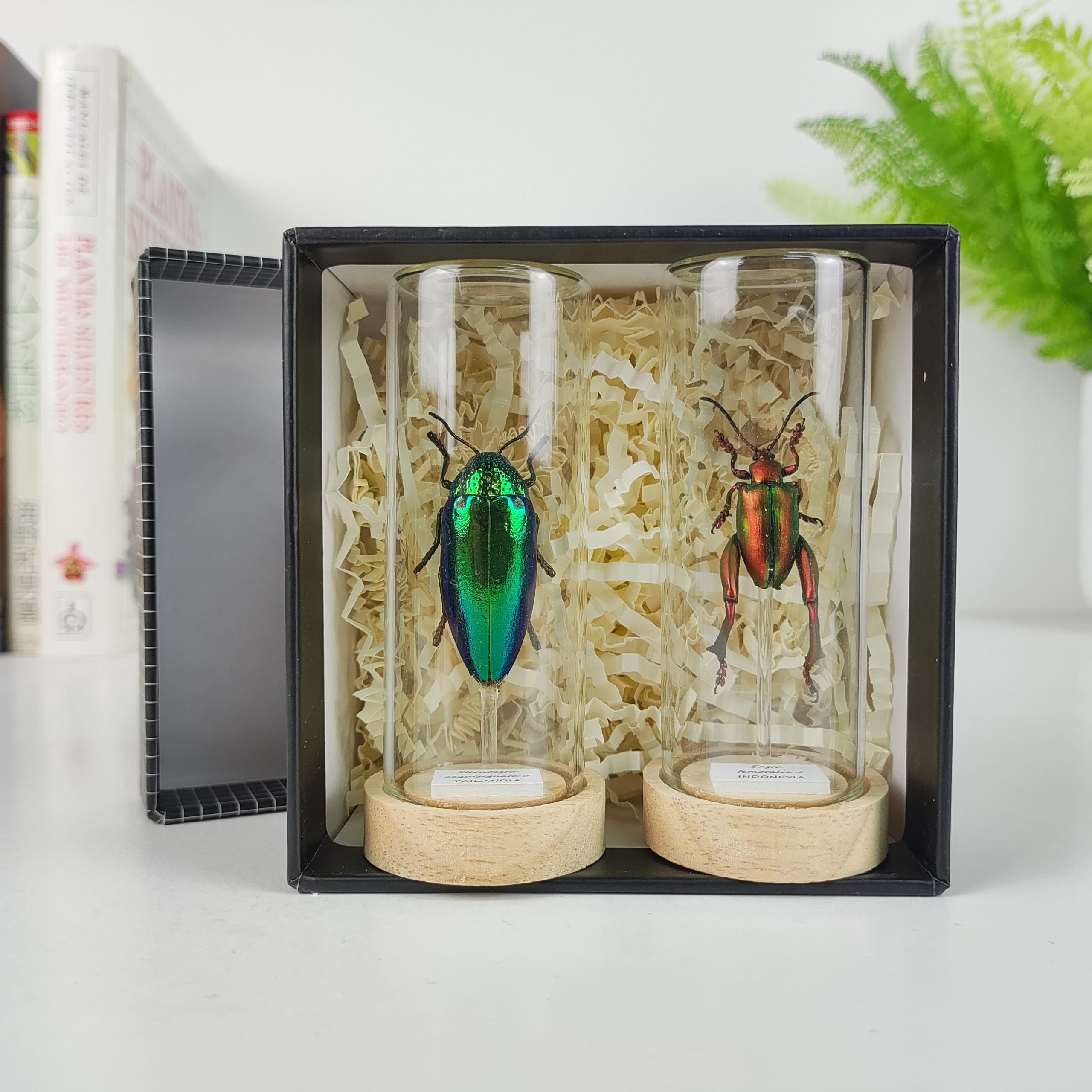 Dos machos de dos llamativas especies asiáticas. Una de Tailandia y otra de Indonesia juntan sus diseños y colores metálicos para decorar y ser un regalo perfecto.