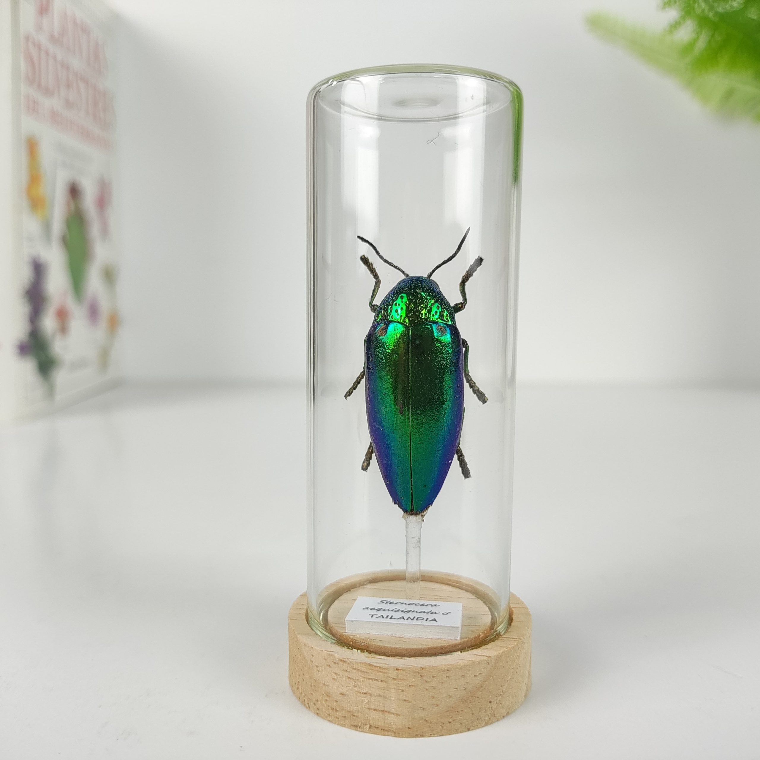 Presentación, Presentación, cúpula de cristal de base de madera natural. Diámetro 4 cm, altura 8,5 cm en CAJITA decorada.