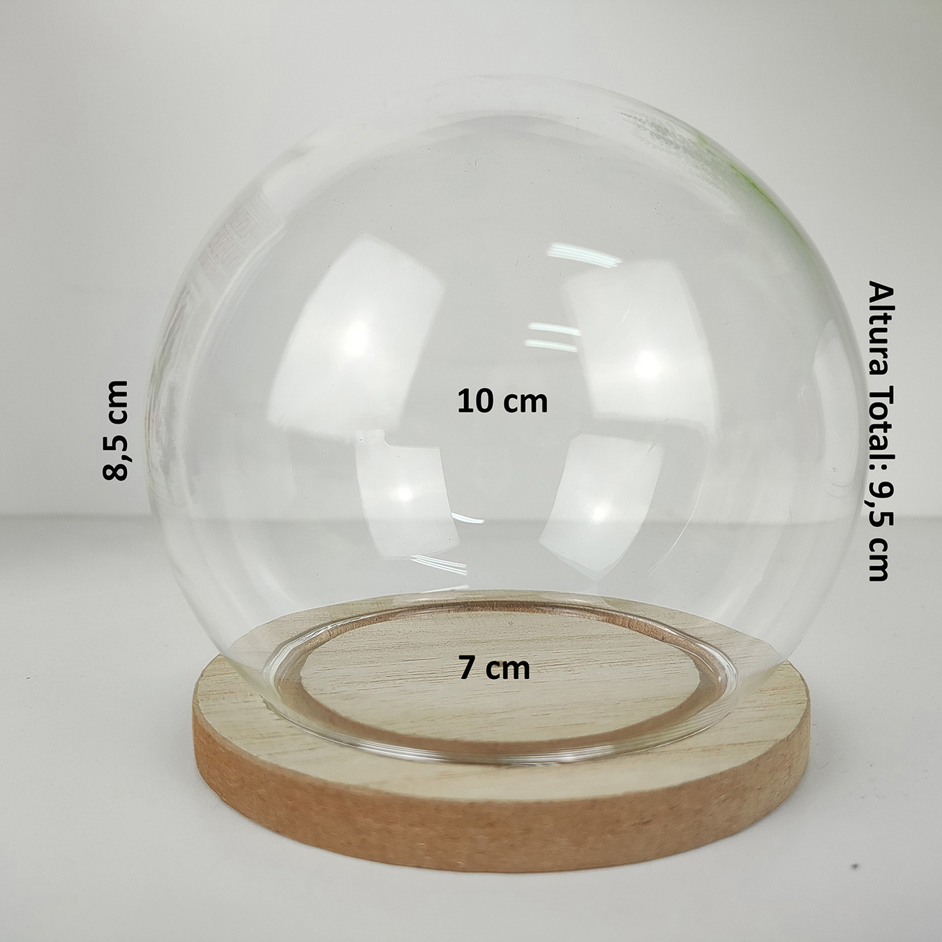 Presentación. Esfera de cristal de base de madera natural. Diámetro 10 cm , altura 8,5 cm.