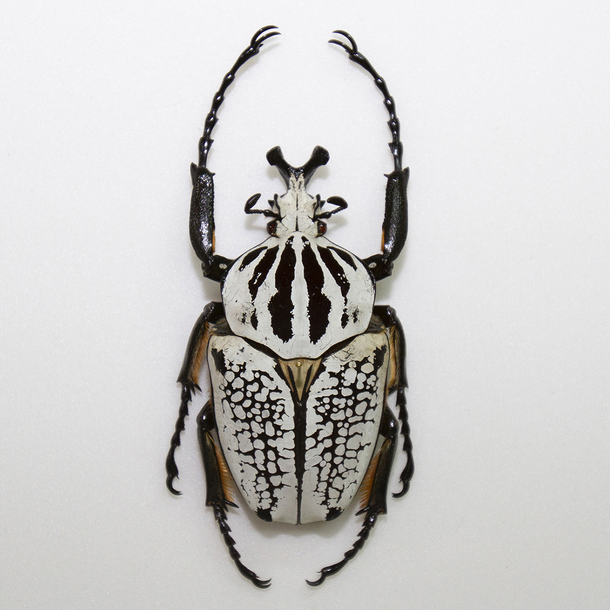 El rey de todos los escarabajos el Goliathus. Este espectacular macho de 7cm proviene de La República democrática del Congo. Su tacto de terciopelo y sus preciosos dibujos en blanco y negro darán un toque muy especial a cualquier espacio.